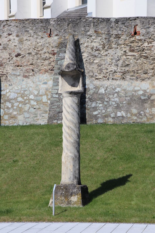 Die Säule stand früher "bei den Beeten" auf dem Weg nach "Klettendorf" und wurde 1969 auf den A.Salzer-Platz versetzt. Die gotische, im ganzen Burgenland einzige Säule, stammt aus dem 15. Jahrhundert. Auf einem Würfelsockel sitzt ein sechsseitiger Pfeiler, der in eine spiralenförmige Säule übergeht. Sie trägt auf einer vierseitigen Platte das Lichthäuschen (vorne offen), das in einen gedrehten Kegelstumpf nach oben ausläuft. Die beiden äußeren Seiten des Lichthäuschens zeigen Wappenschilder, die mit Pflugscharen und Hirtenhörnern verziert sind.